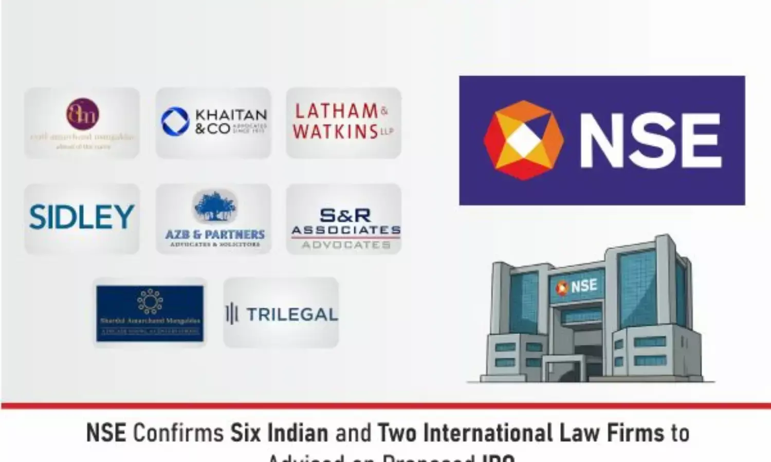 Cyril Amarchand Mangaldas, Khaitan & Co, Latham & Watkins LLP, Sidley Austin Singapore Pte. Ltd., AZB & Partners, S&R Associates, Shardul Amarchand Mangaldas & Co and Trilegal have been selected to advise on the proposed Initial Public Offering (IPO) of National Stock Exchange of India Limited (NSE).