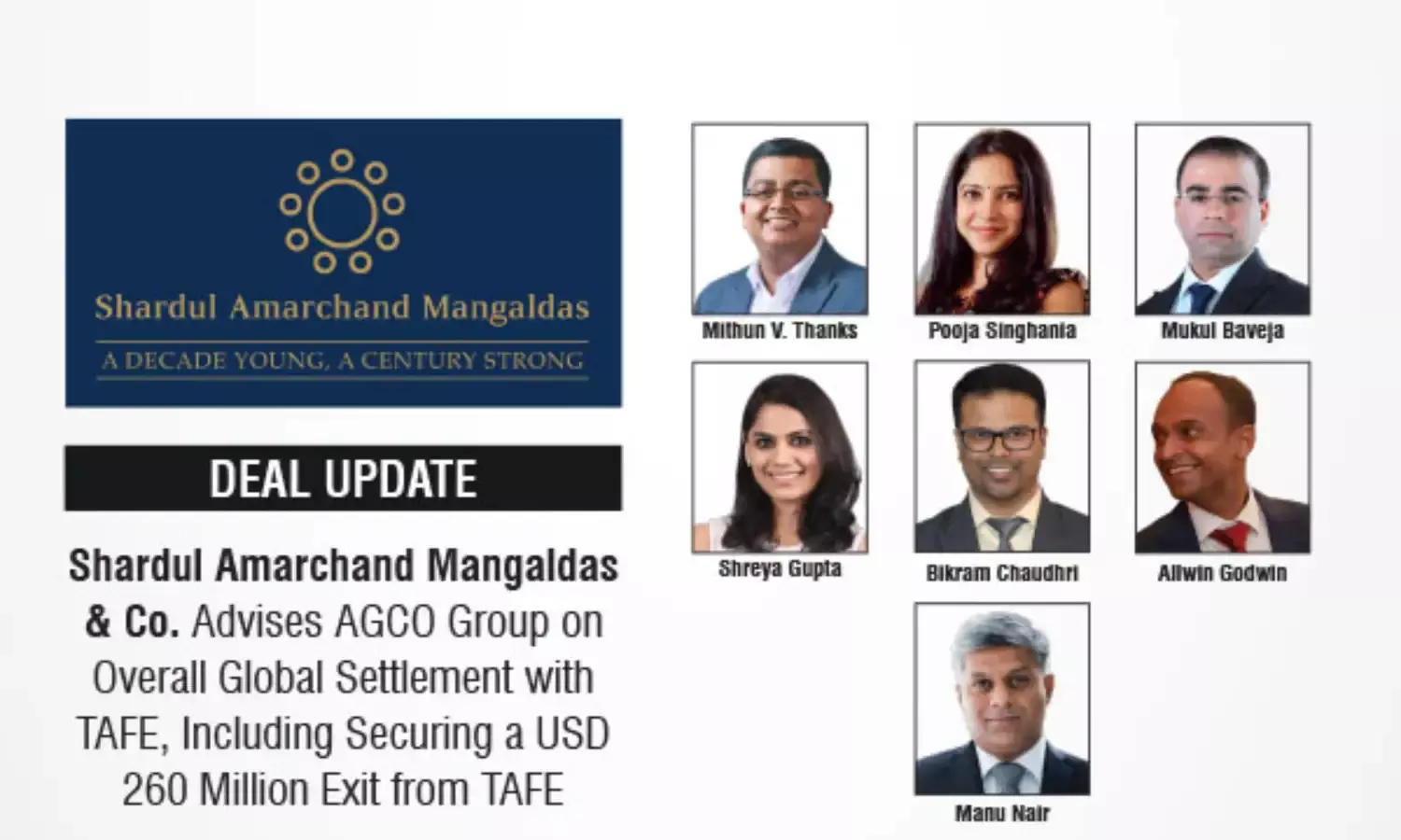 shardul amarchand mangaldas advises AGCO Group on global settlement with TAFE, securing USD 260M exit.