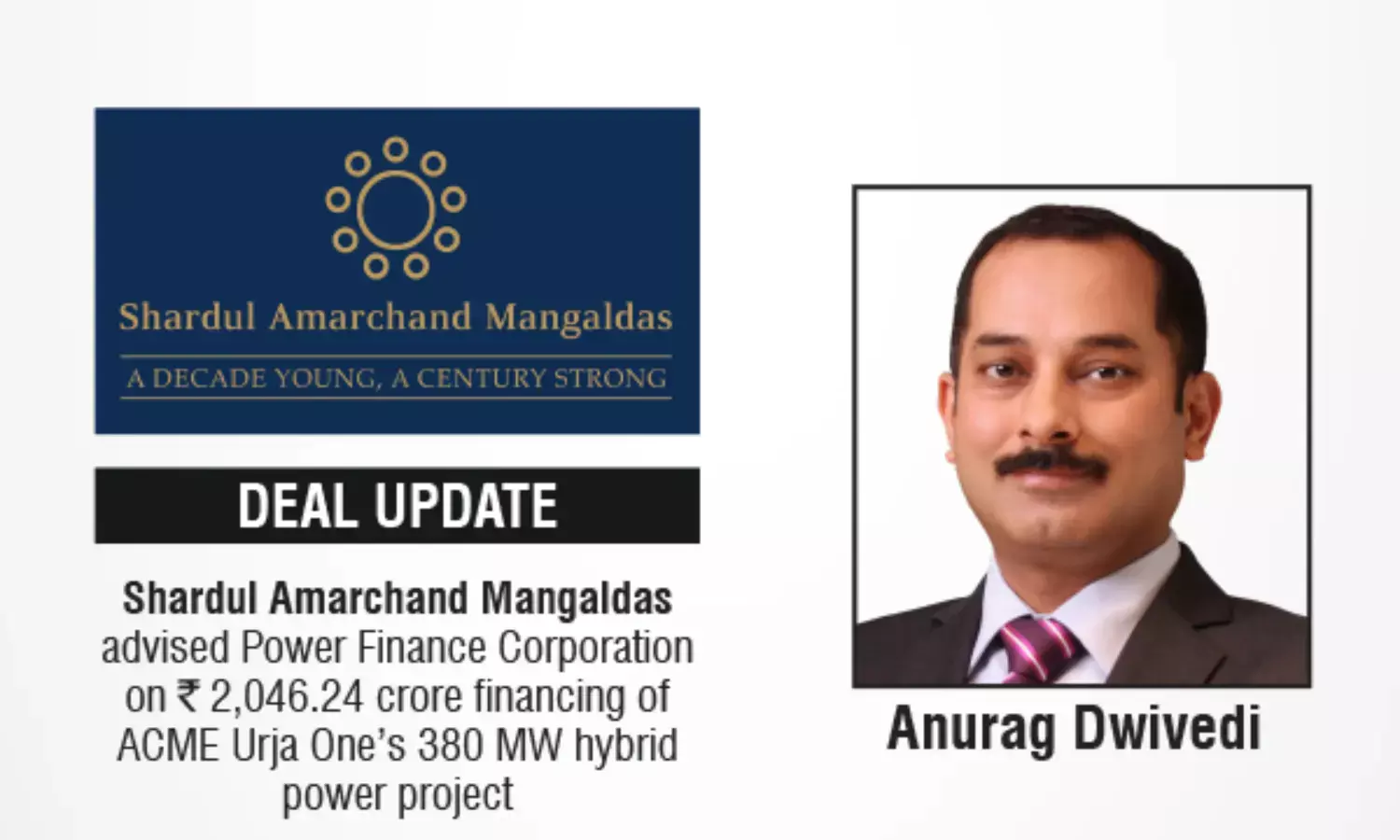 Shardul Amarchand Mangaldas advised Power Finance Corporation on ₹2,046.24 crore financing of ACME Urja One’s 380 MW hybrid power project