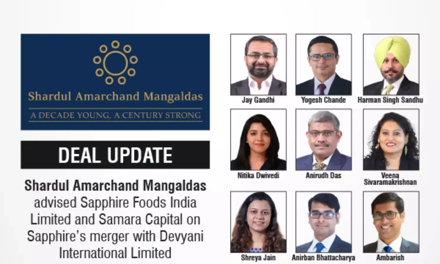 Shardul Amarchand Mangaldas advised Sapphire Foods and Samara Capital on Sapphire’s merger with Devyani International.