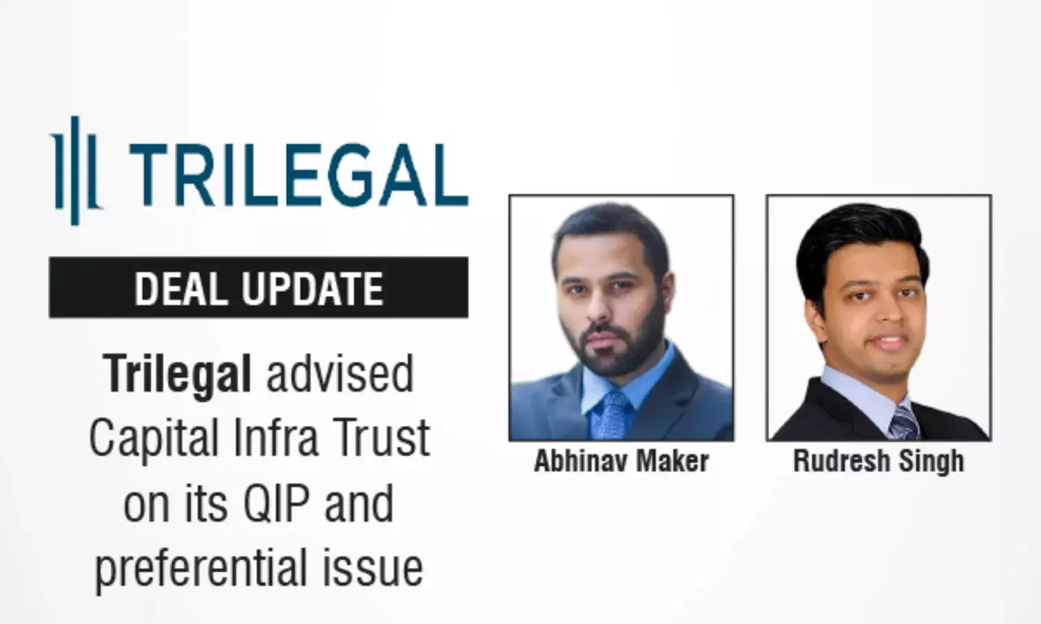 Trilegal advised Capital Infra Trust on ₹12,500 million QIP and ₹3,450.06 million preferential issue.