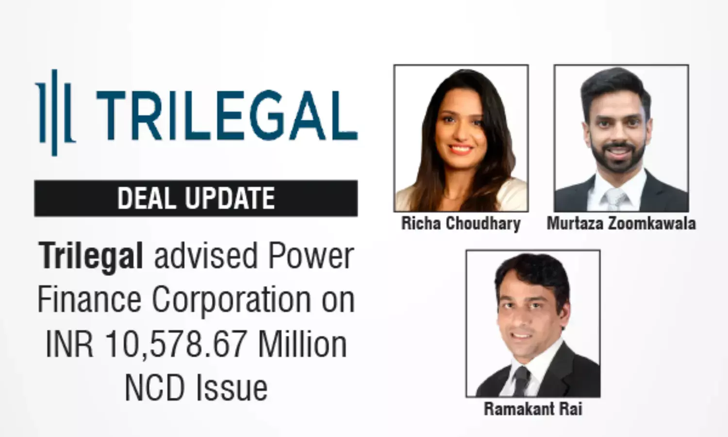 The Trilegal Capital Markets team advising on the transaction was led by Richa Choudhary (Partner) and Murtaza Zoomkawala (Partner), with support from Avanti Kale (Counsel), Aayush Khandelwal (Senior Associate), and Associates Siddhant Mishra, Shambuk Biswas, Nithyashree Venkataraman, Samruddhi Varma, and Sakshi Nalawade.