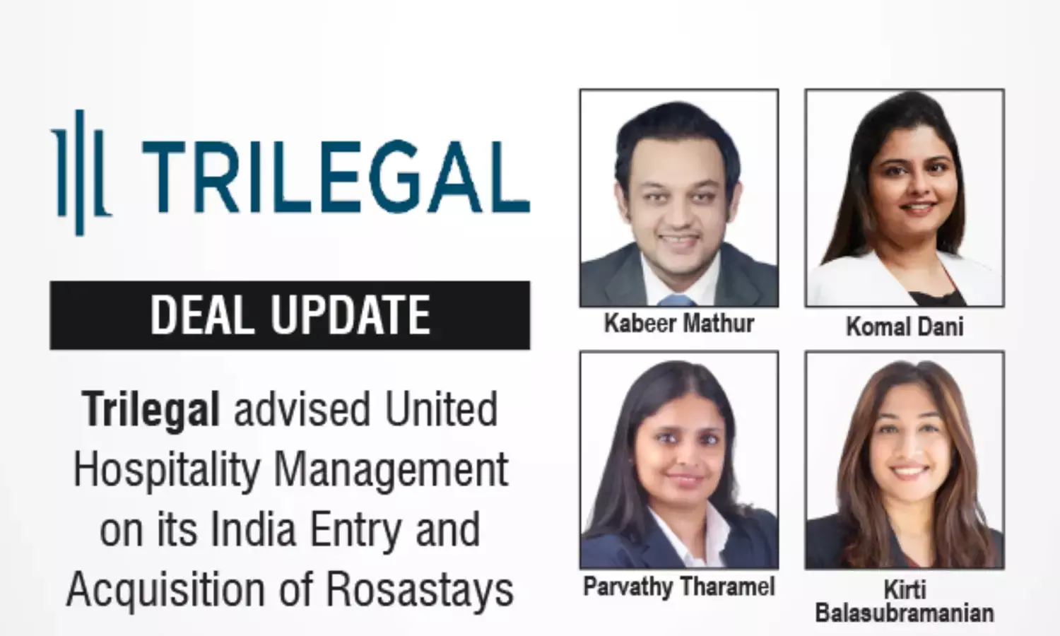 Trilegal Advised United Hospitality Management On Its India Entry and Acquisition Of Rosastays