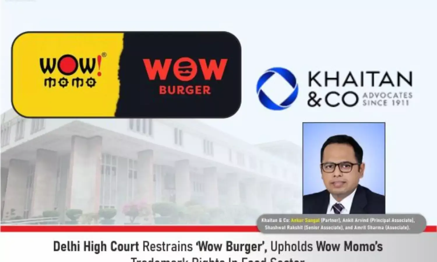 Delhi HC restrains ‘Wow Burger’, upholding Wow Momo’s trademark rights in India’s food and beverage sector.