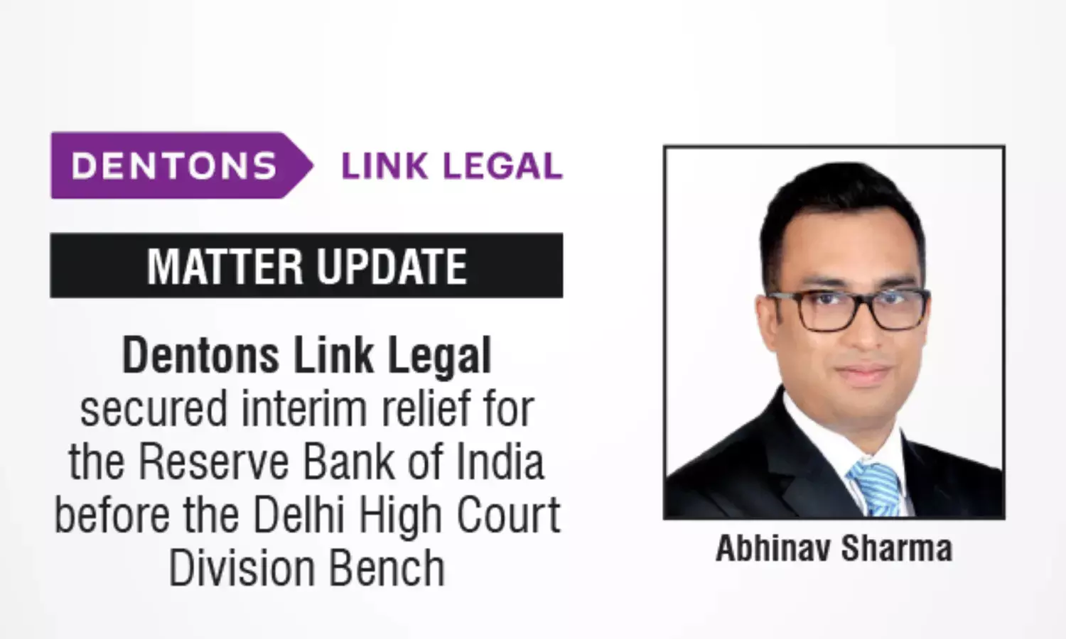 Dentons Link Legal secured interim relief for the Reserve Bank of India before the Delhi High Court Division Bench