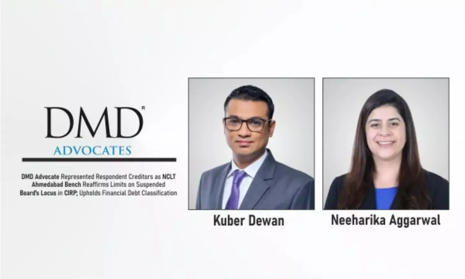 DMD Advocate represented creditors as NCLT Ahmedabad upheld financial debt classification and limits on suspended board in CIRP.