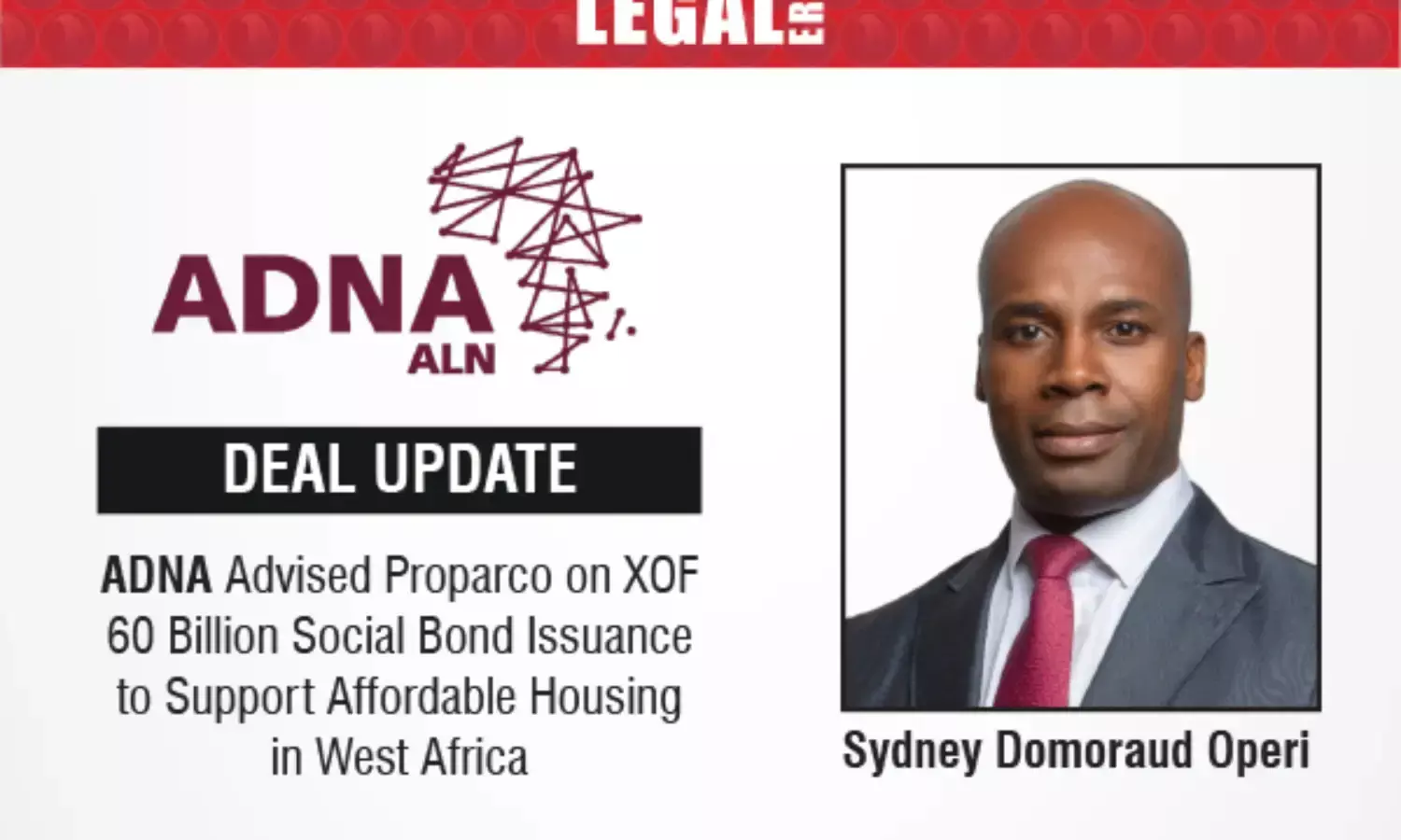 The ADNA team was led by Sydney Domoraud Operi, with support from Associates Salimata Sow and Sigismond Konan. Martial Akakpo & Associés acted as Togolese counsel on the transaction.