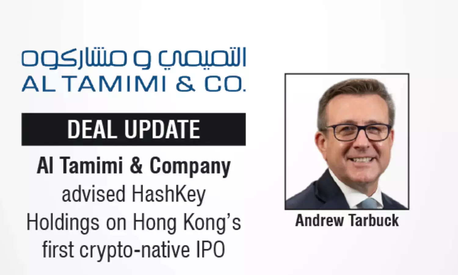 Al Tamimi & Company advised HashKey Holdings on Hong Kong’s first-ever crypto-native IPO, raising HK$1.61 billion.