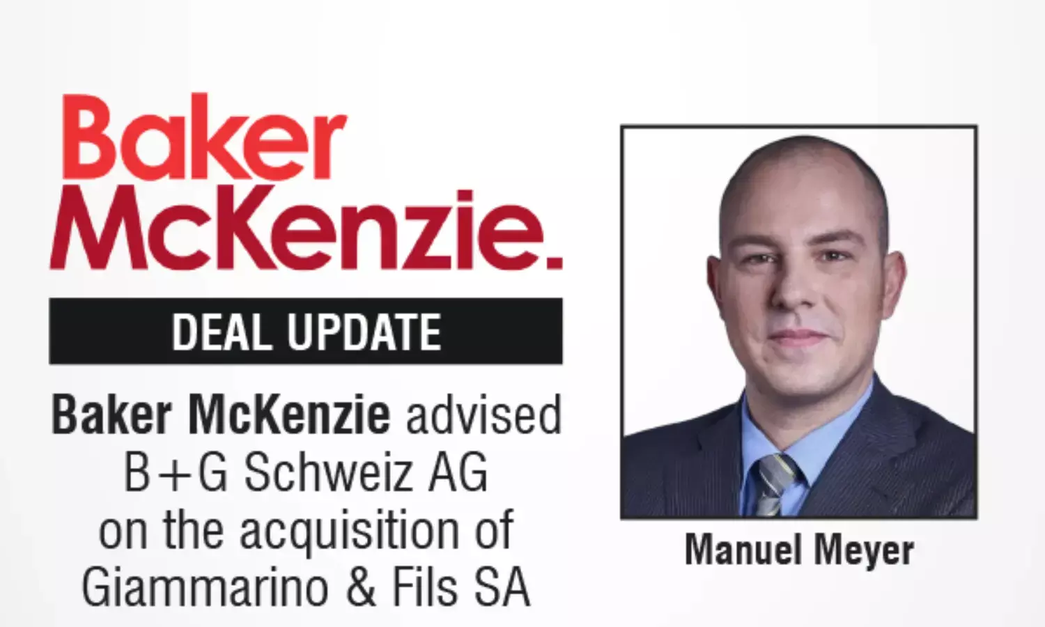 Baker McKenzie Advised B+G Schweiz AG On The Acquisition Of Giammarino & Fils SA