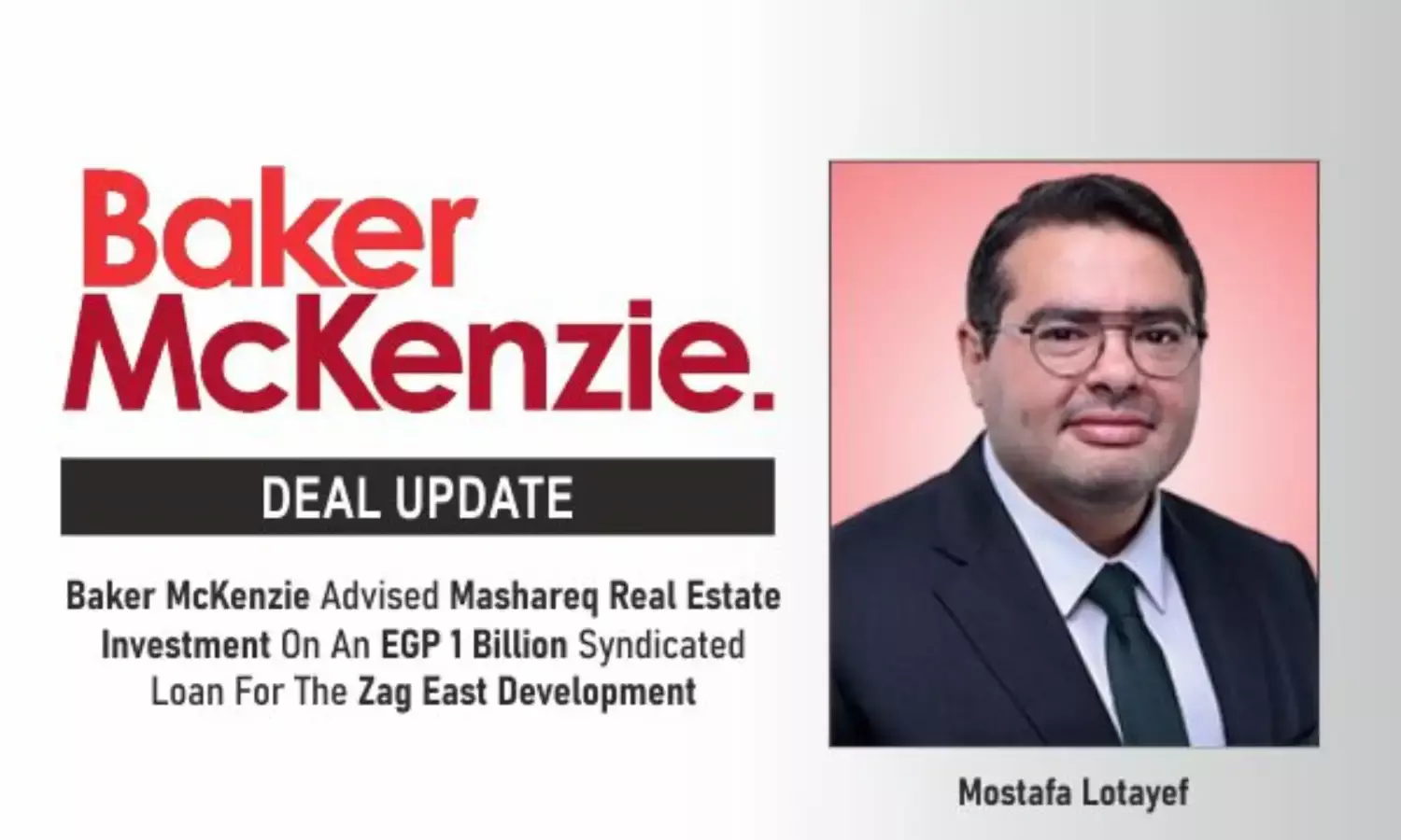 Baker McKenzie advised Mashareq Real Estate on an EGP 1 billion syndicated loan for the Zag East project.
