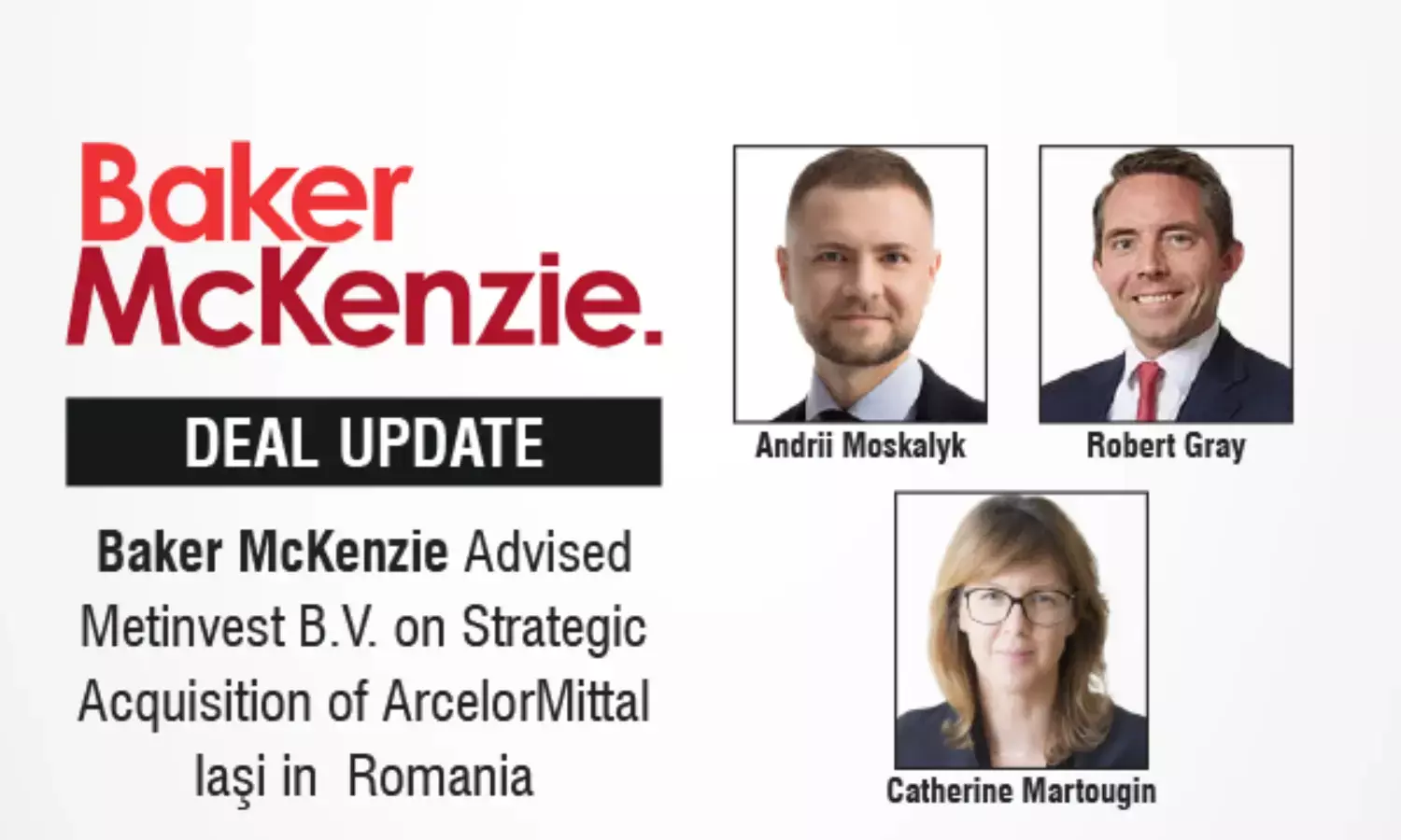 The global law firm, Baker McKenzie Kyiv office acted as lead transactional counsel to Metinvest B.V. on the strategic acquisition from ArcelorMittal Tubular Products Holding B.V. of a majority shareholding in ArcelorMittal Iași, Romania. This landmark transaction represents a significant milestone in Metinvest’s ongoing regional expansion and reinforces the company’s commitment to strengthening its footprint across Central and Eastern Europe.