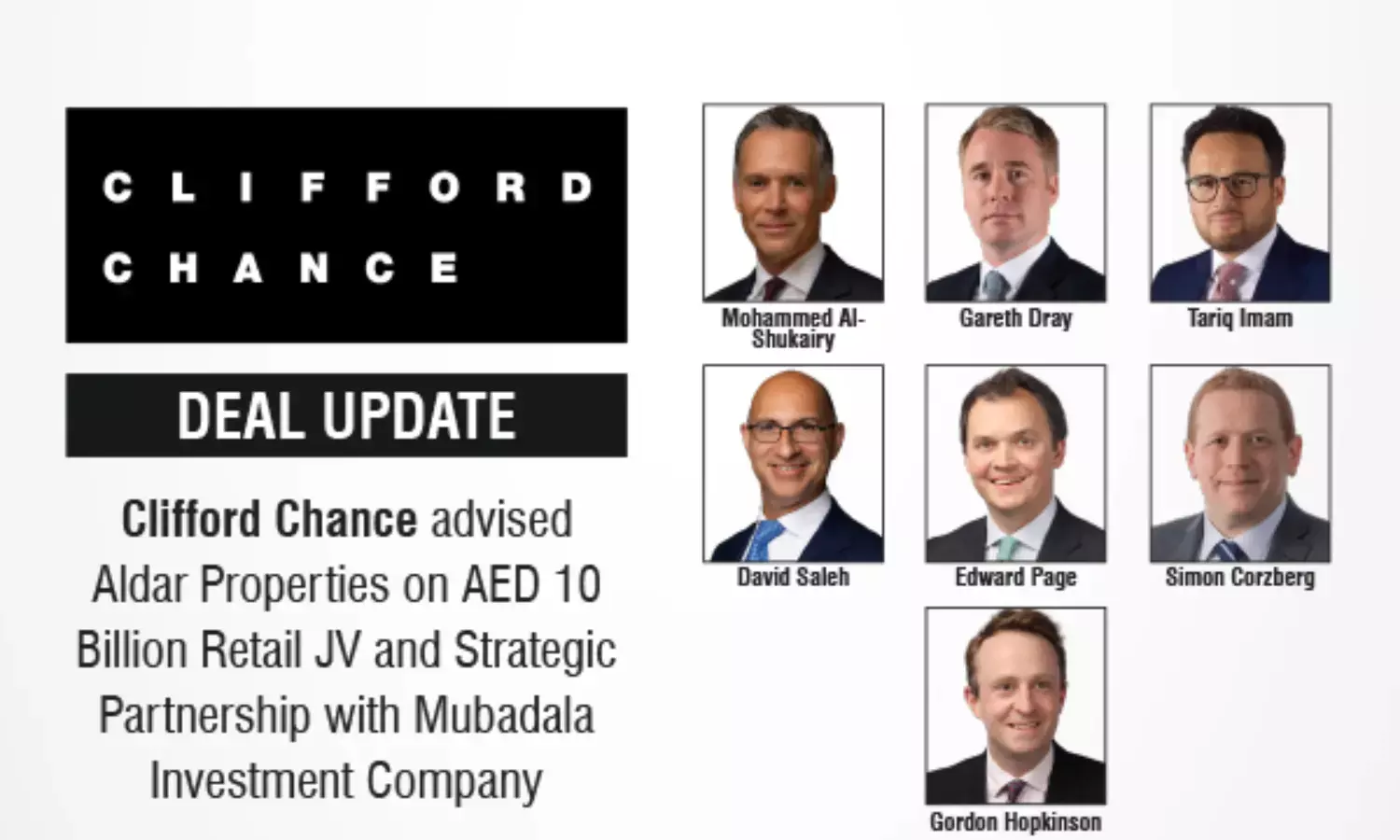 Clifford Chance advised Aldar on AED 10B retail JV and strategic partnership with Mubadala.