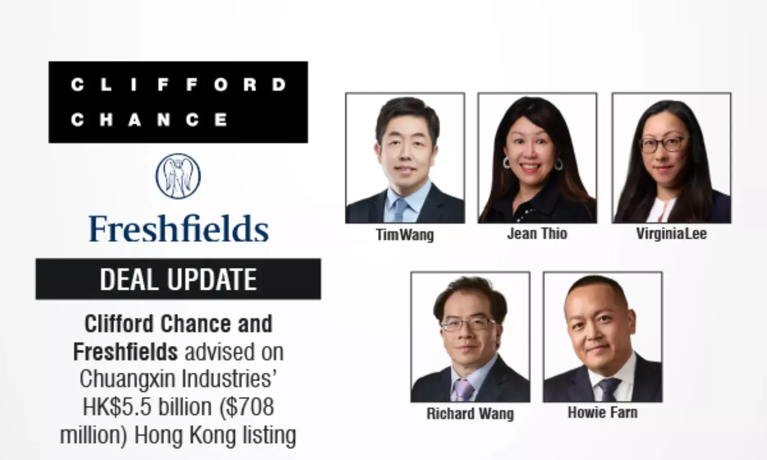 Clifford Chance And Freshfields Advised On Chuangxin Industries’ HK$5.5 Billion ($708 Million) Hong Kong Listing