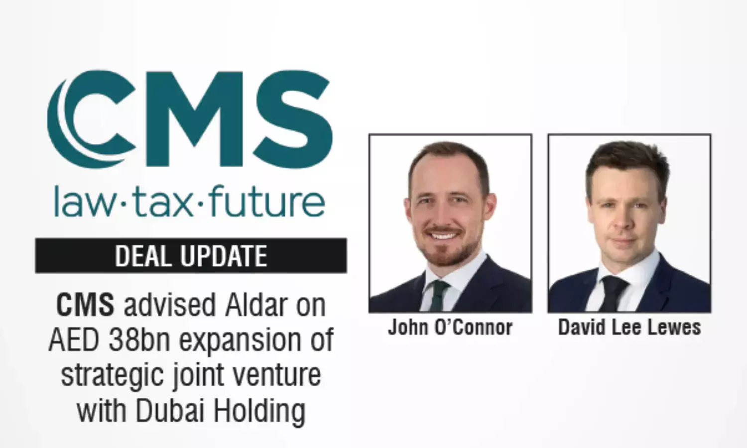 The leading global international law firm, CMS has advised Aldar, the leading Abu Dhabi-based real estate developer, on the expansion of its strategic joint venture with Dubai Holding. The transaction adds two landmark development sites in Dubai with a combined gross development value exceeding AED 38 billion.