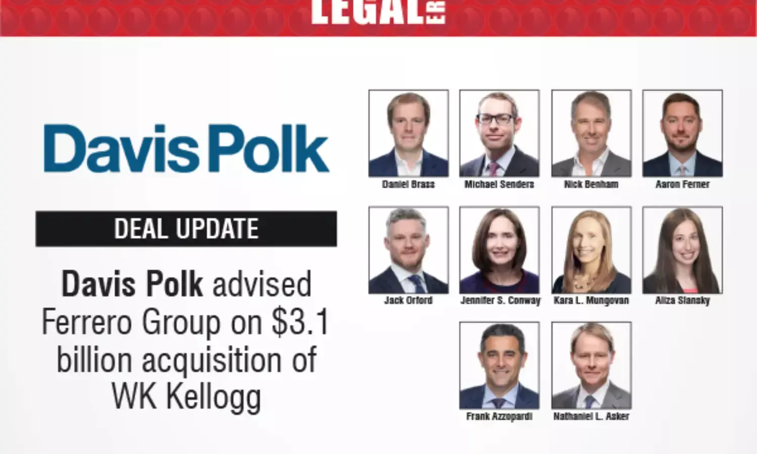 Davis Polk advised Ferrero Group on $3.1 billion acquisition of WK Kellogg