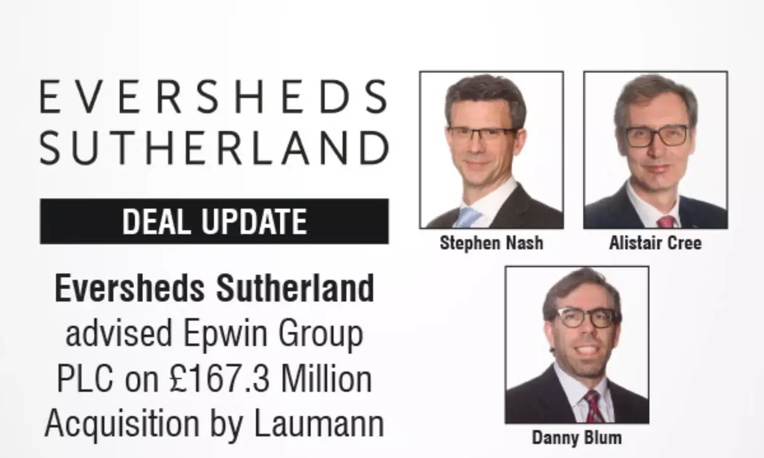 Eversheds Sutherland advised Epwin Group PLC on its £167.3M acquisition by German supplier Laumann.