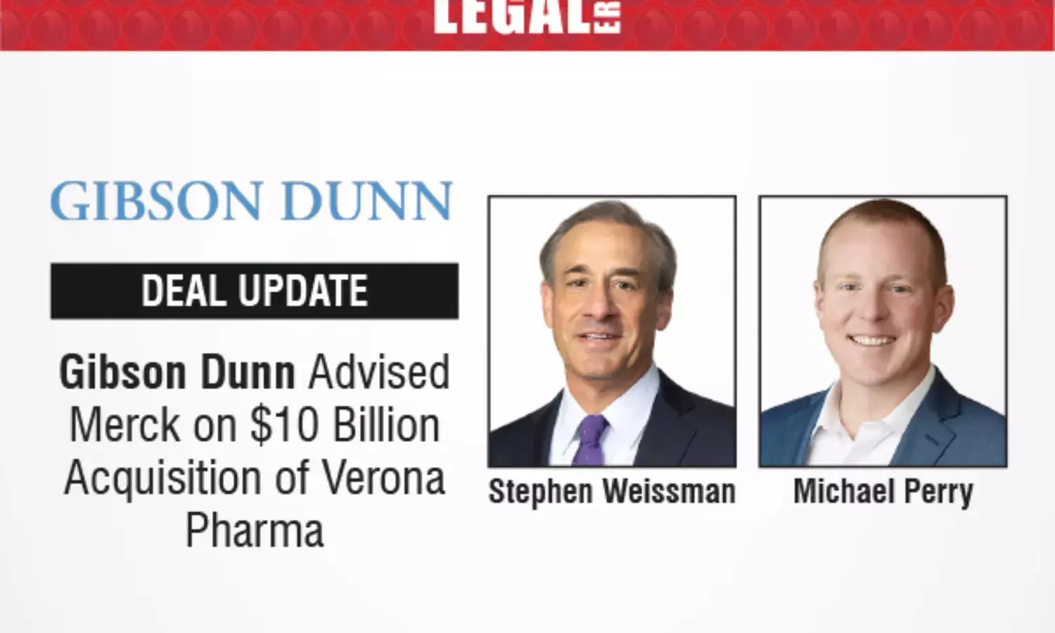 Gibson Dunn Advised Merck On $10 Billion Acquisition Of Verona Pharma