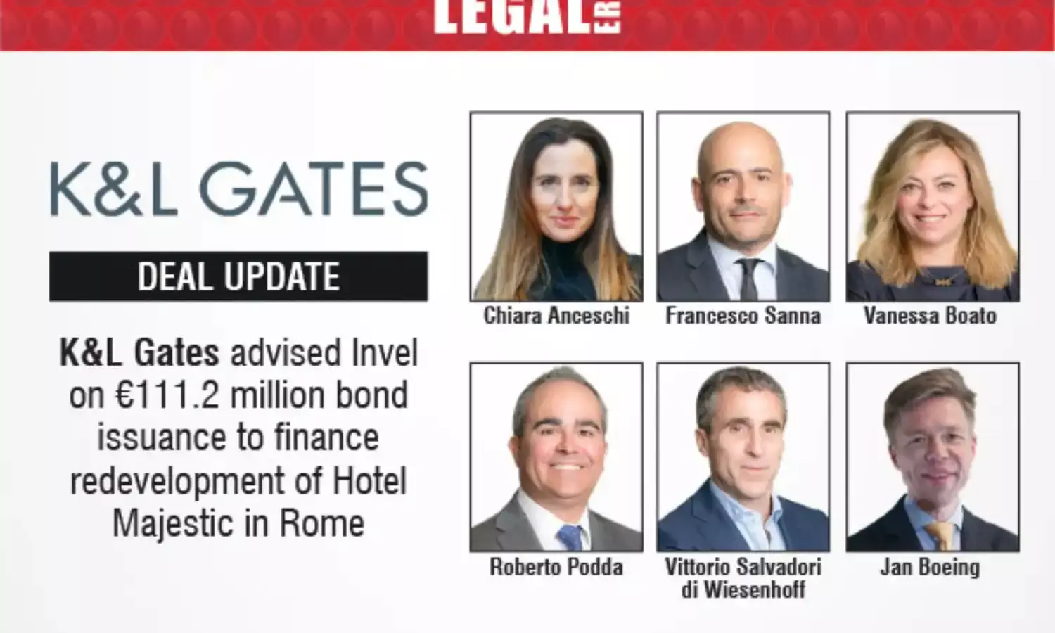The K&L Gates team was led by K&L Gates advised Invel on €111.2 million bond issuance to finance redevelopment of Hotel Majestic in Rome