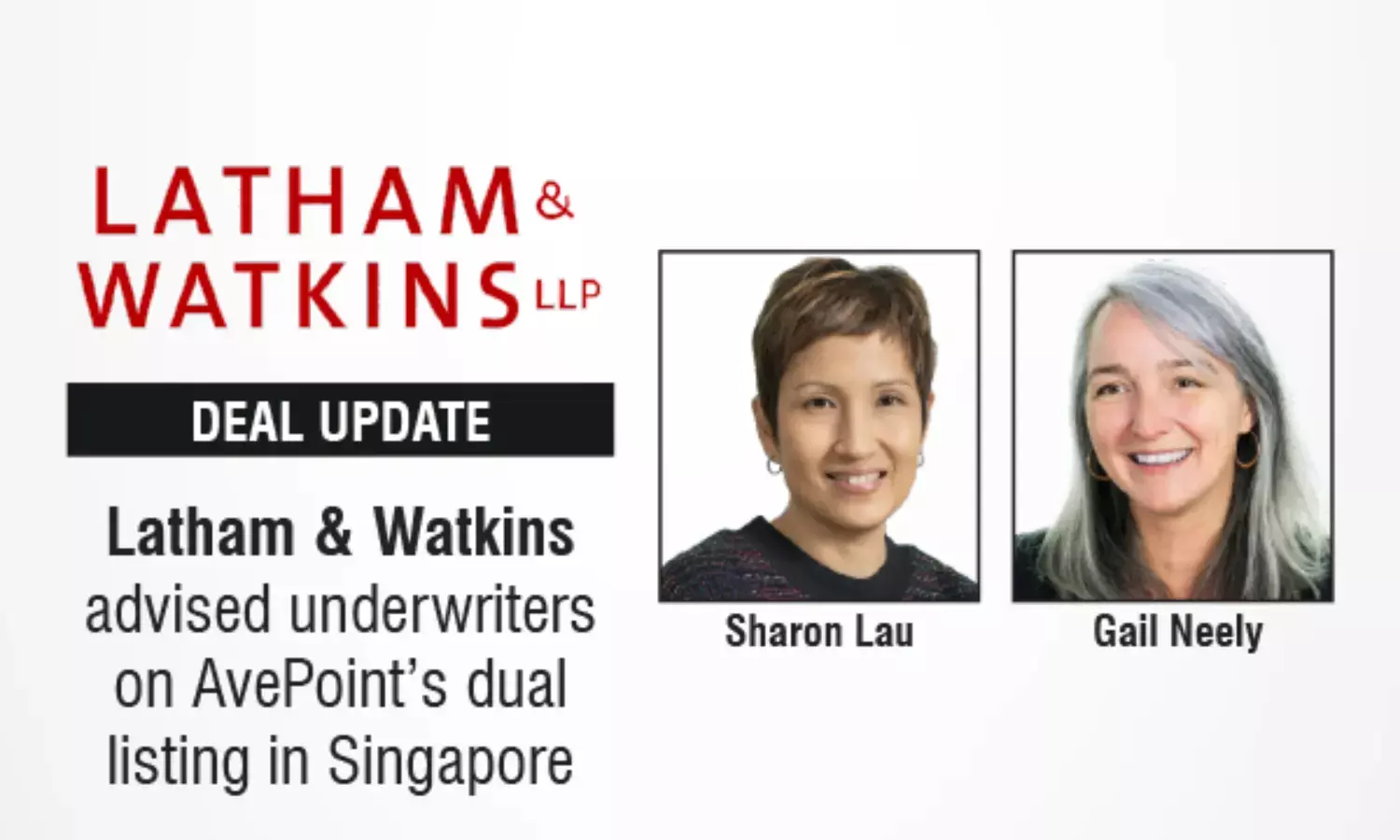 Latham & Watkins advised underwriters on AvePoint’s Singapore dual listing and public offering raising S$259 million.