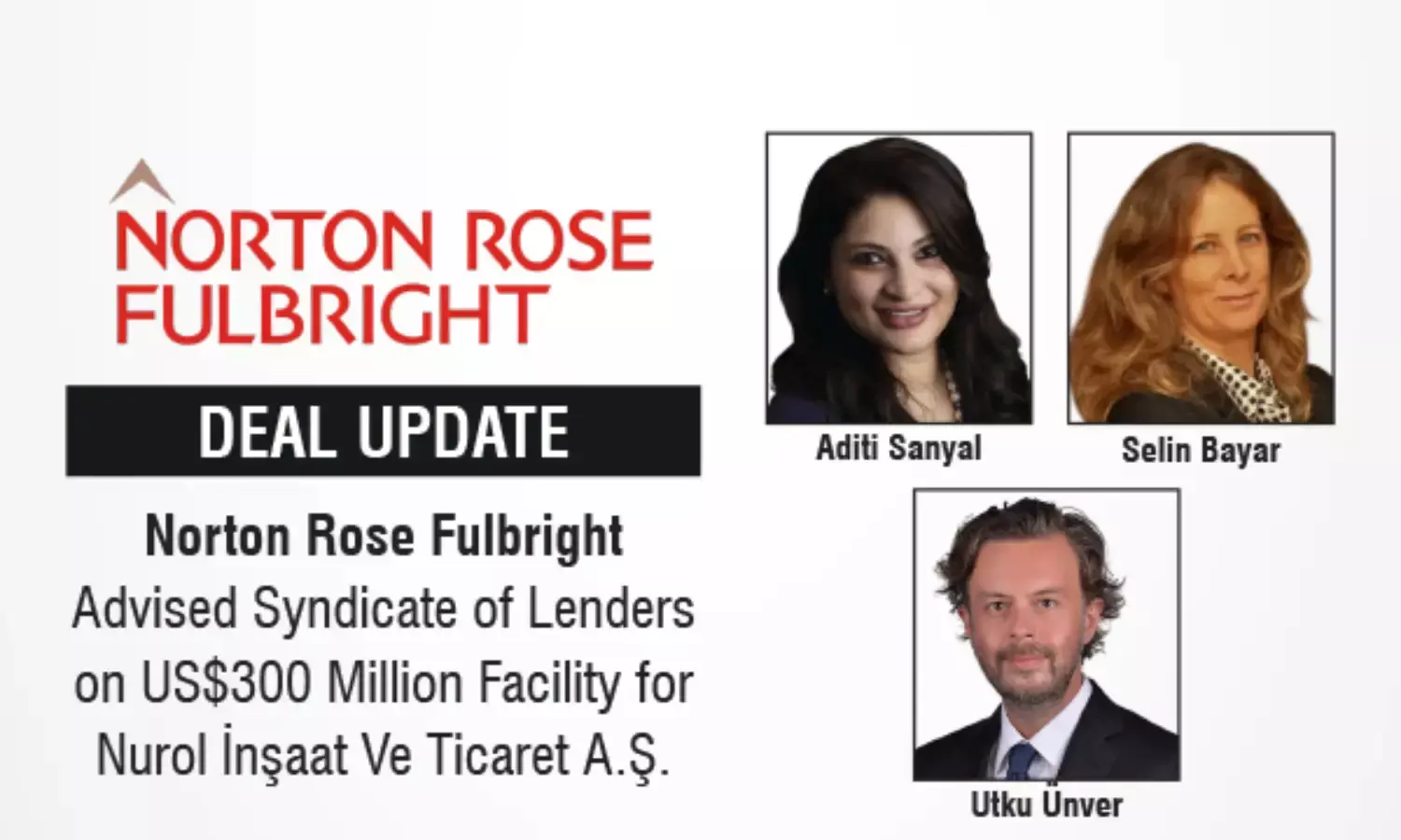 The global law firm, Norton Rose Fulbright, advised a syndicate of lenders on a US$300 million financing facility extended to Turkish construction company Nurol İnşaat Ve Ticaret A.Ş., a subsidiary of Nurol Holding A.Ş., with Nurol Holding A.Ş. acting as guarantor.