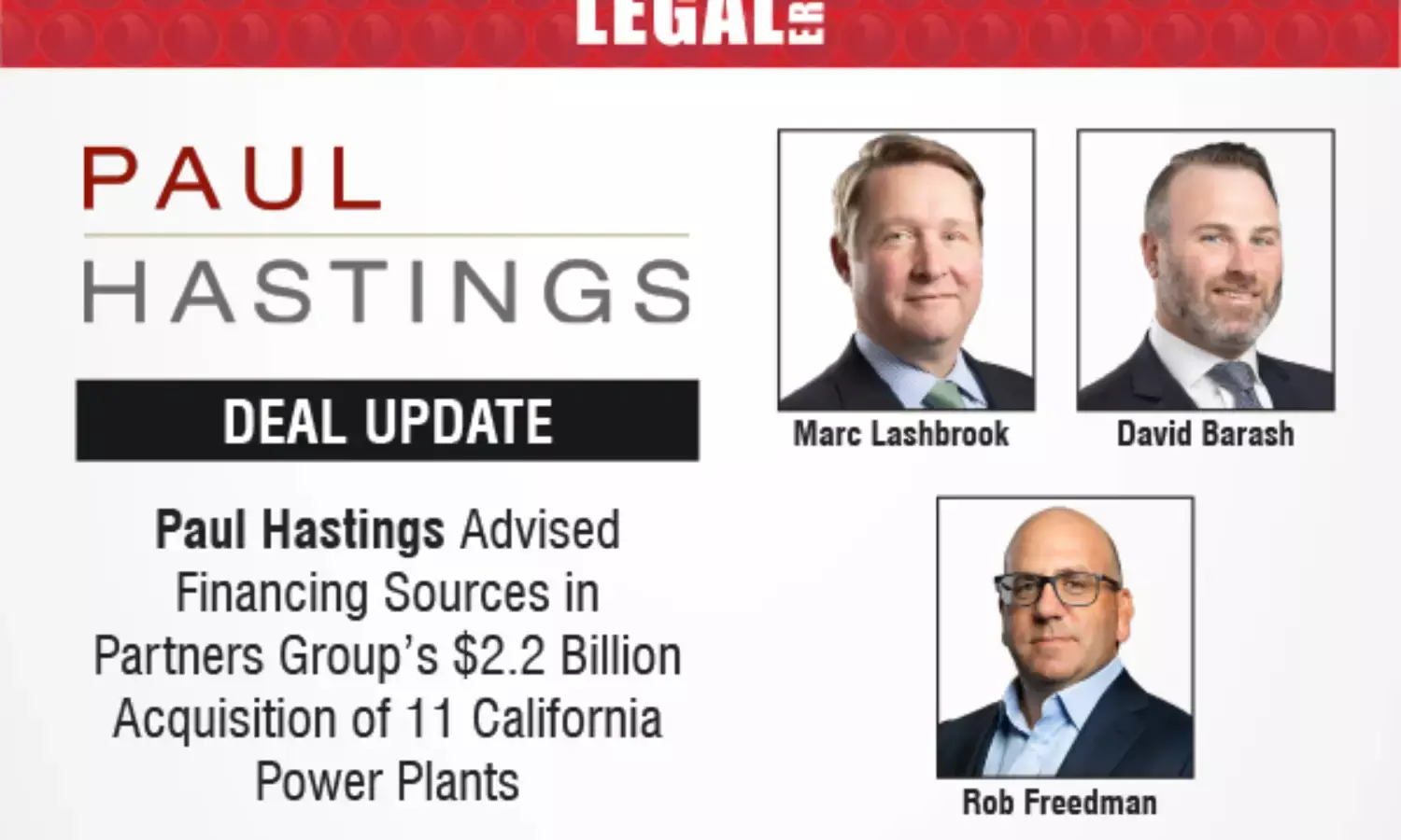 Paul Hastings Advised Financing Sources in Partners Group’s $2.2 Billion Acquisition of 11 California Power Plants