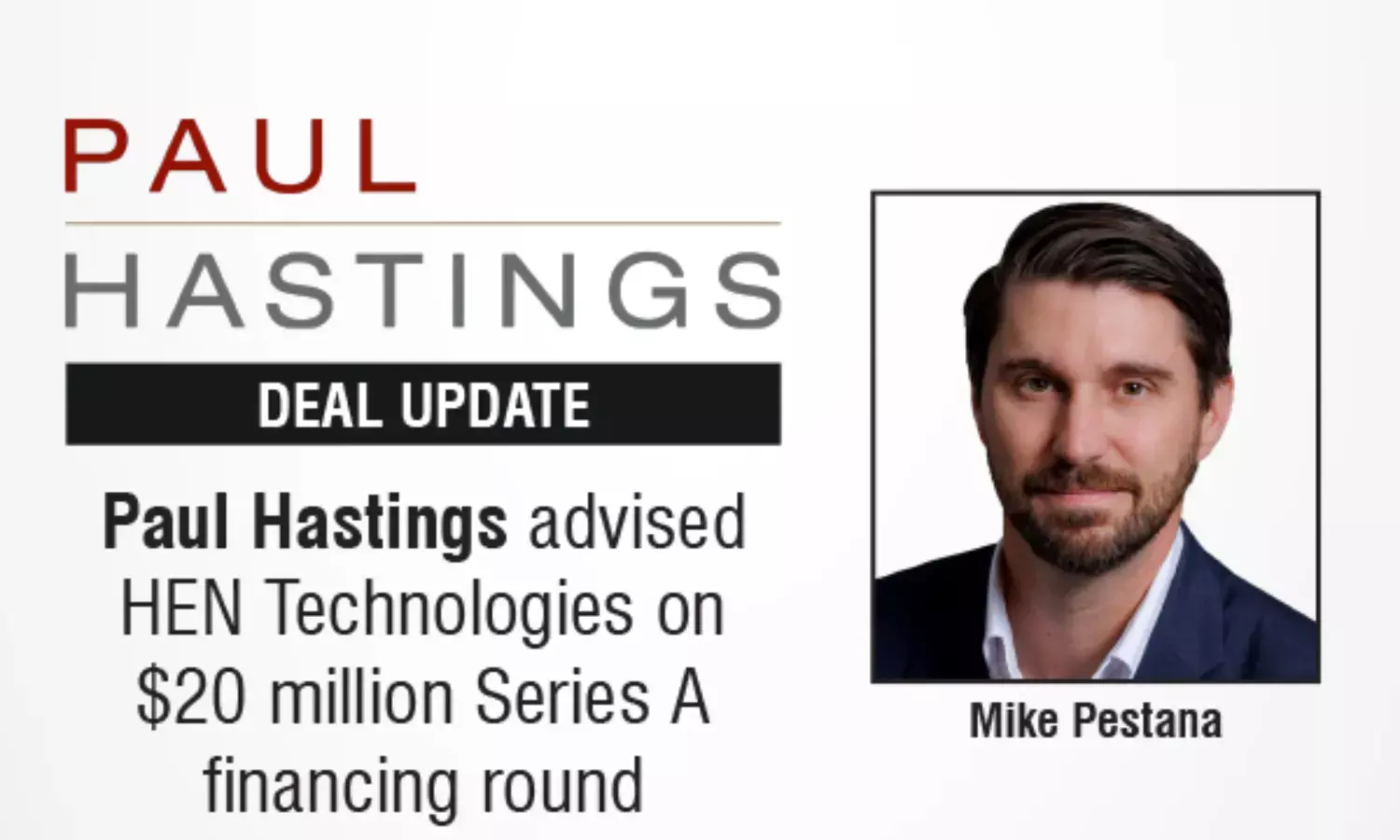 Paul Hastings Advised HEN Technologies On $20 Million Series A Financing Round
