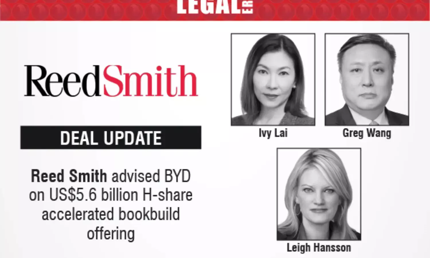 Reed Smith advised BYD on US$5.6 billion H-share accelerated bookbuild offering