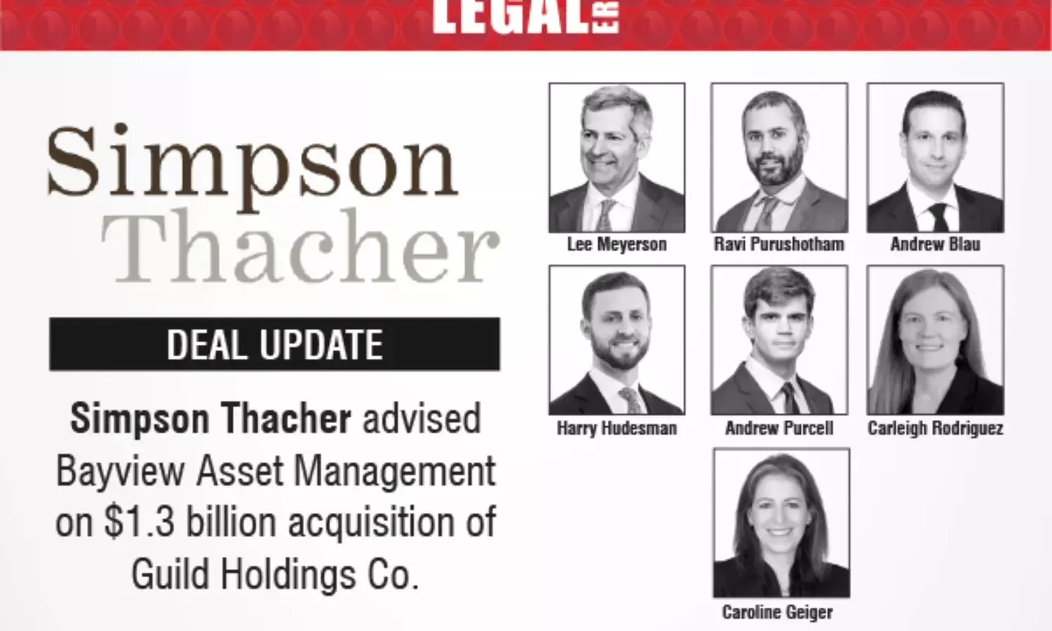 Simpson Thacher advised Bayview Asset Management on $1.3 billion acquisition of Guild Holdings Co.