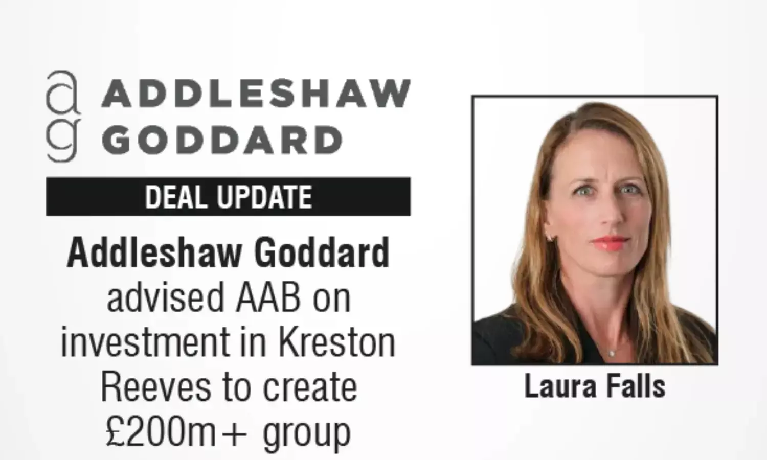 International law firm Addleshaw Goddard has, alongside Linklaters, advised leading professional services group AAB on its investment in accountancy and business advisory firm Kreston Reeves, which will create a combined business with more than £200 million in annual revenue.