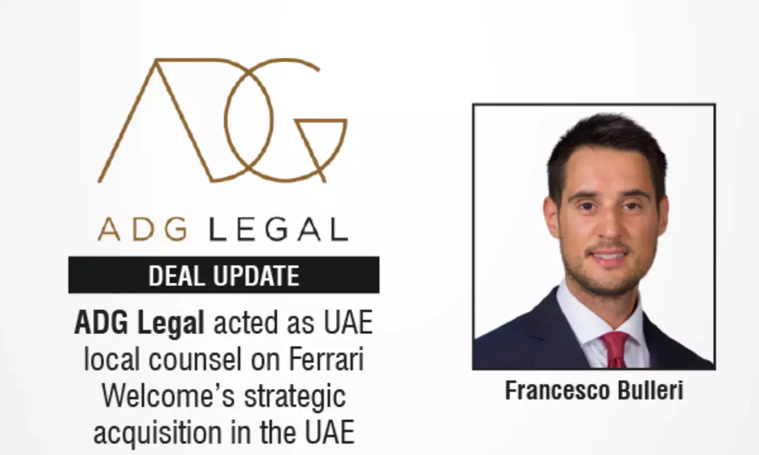 ADG Legal acted as UAE local counsel on Ferrari Welcome’s strategic acquisition in the UAE