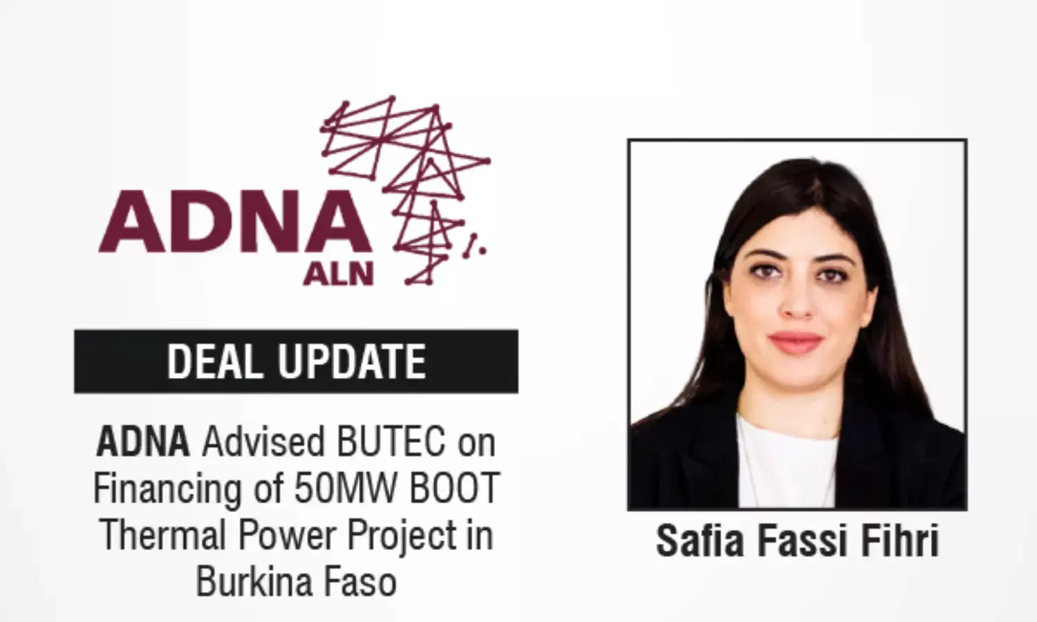 ADNA advised BUTEC on financing a 50MW BOOT thermal power project in Burkina Faso valued at FCFA 26 billion.