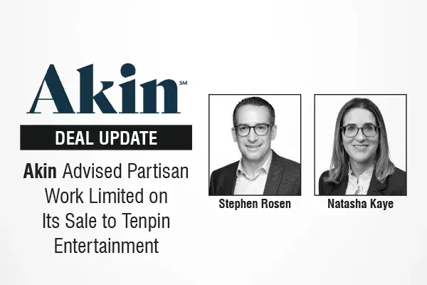 Akin Gump Strauss Hauer & Feld LLP Advised Partisan Work Limited on Its Sale to Tenpin Entertainment