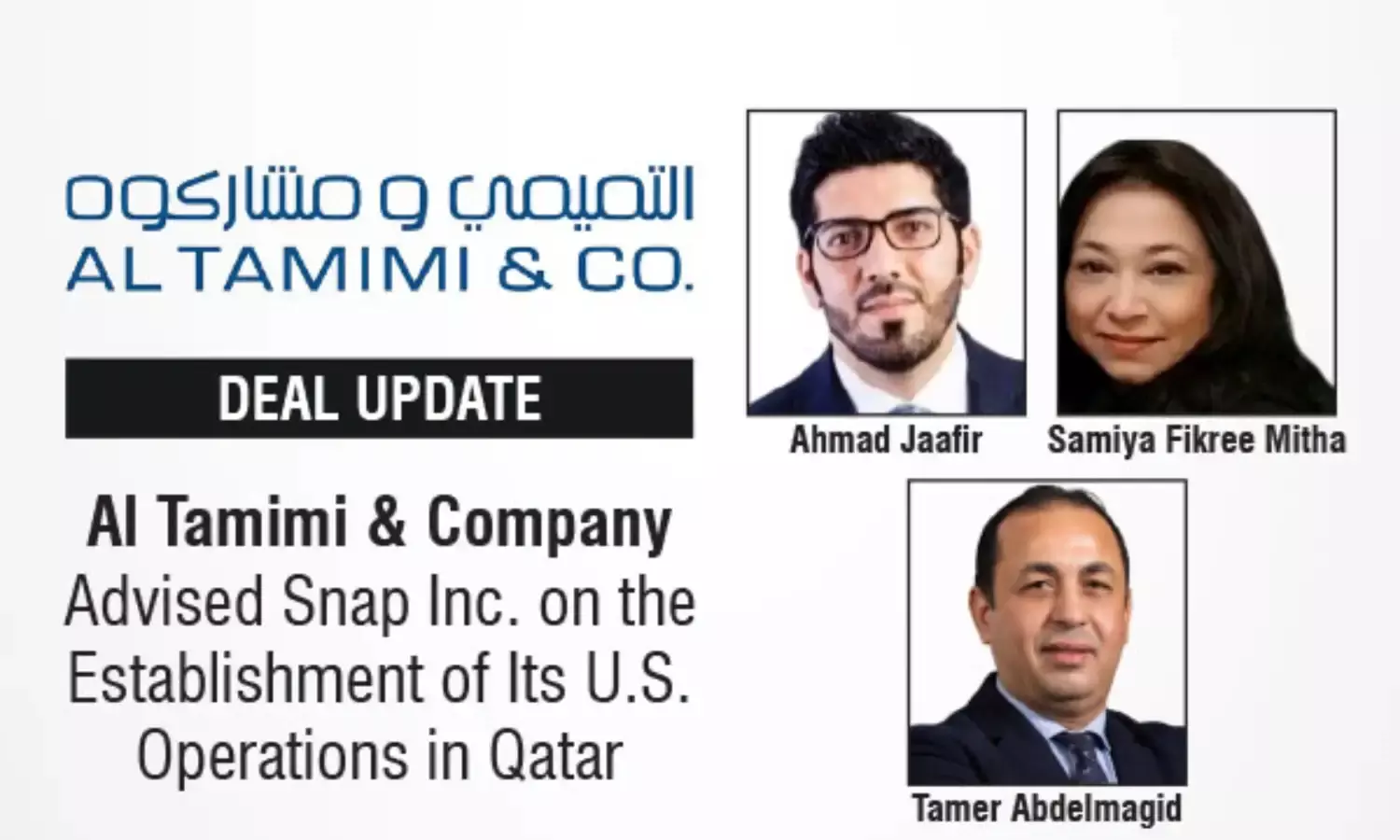 Al Tamimi & Company advised Snap Inc. on establishing its U.S. operations in Qatar, supporting global expansion.