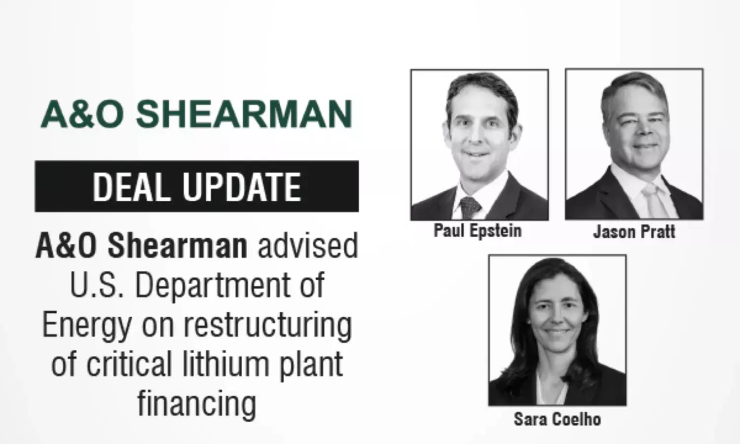 A&O Shearman Advised U.S. Department of Energy on Restructuring of Critical Lithium Plant Financing