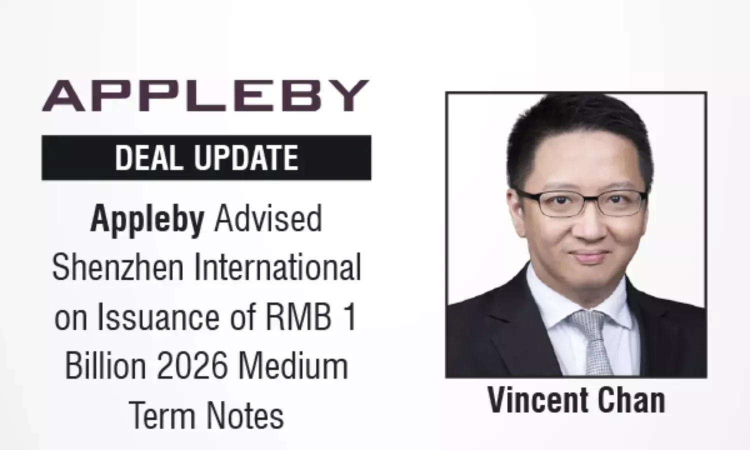 The Appleby deal was led by Vincent Chan (Partner/ Hong Kong).