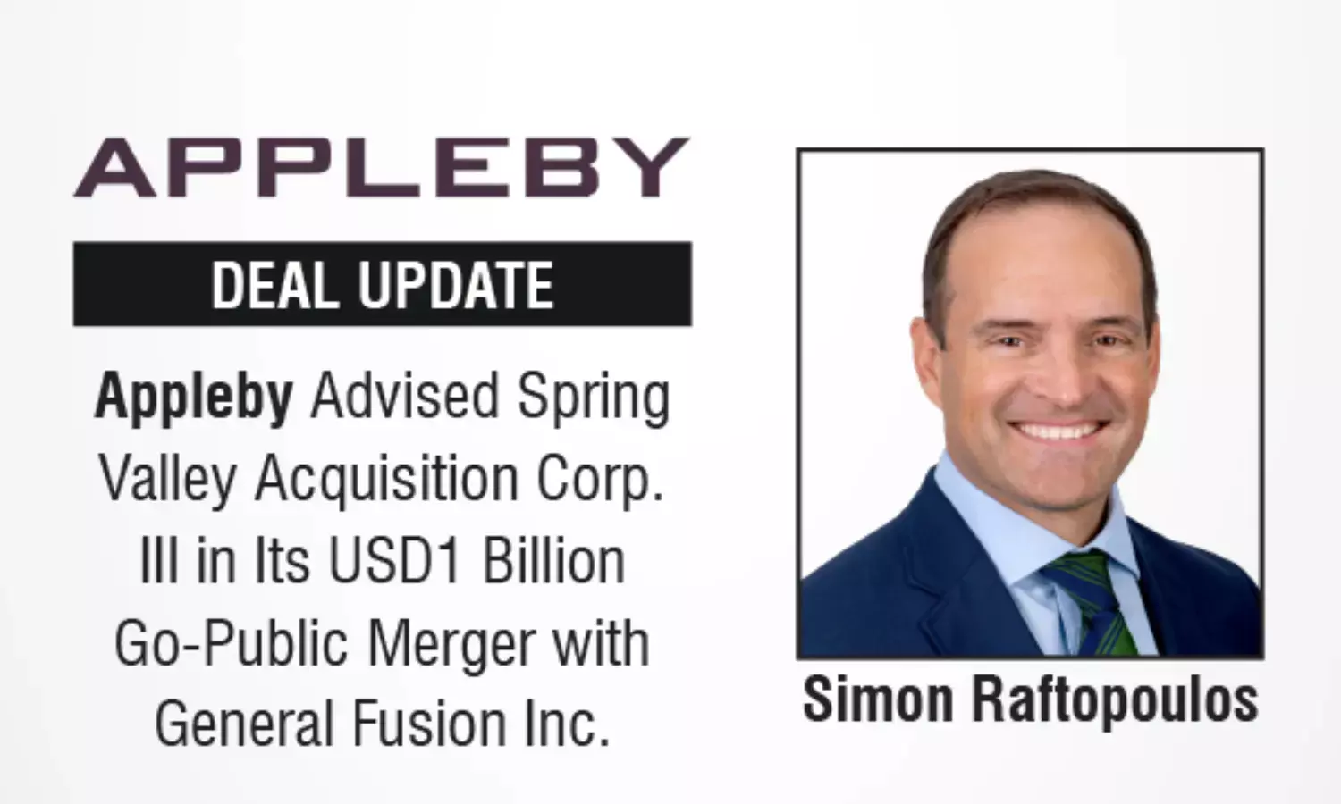 Appleby Advised Spring Valley Acquisition Corp. III in Its USD1 Billion Go-Public Merger with General Fusion Inc.