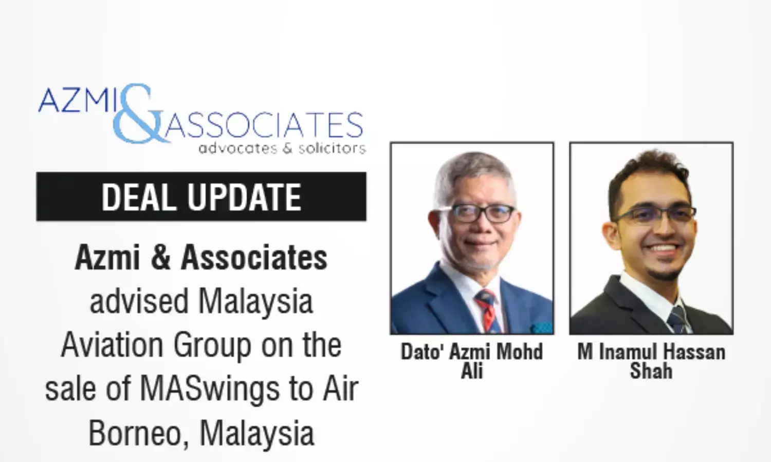 Azmi & Associates advised Malaysia Aviation Group on the sale of MASwings to Air Borneo, marking a regional aviation milestone.
