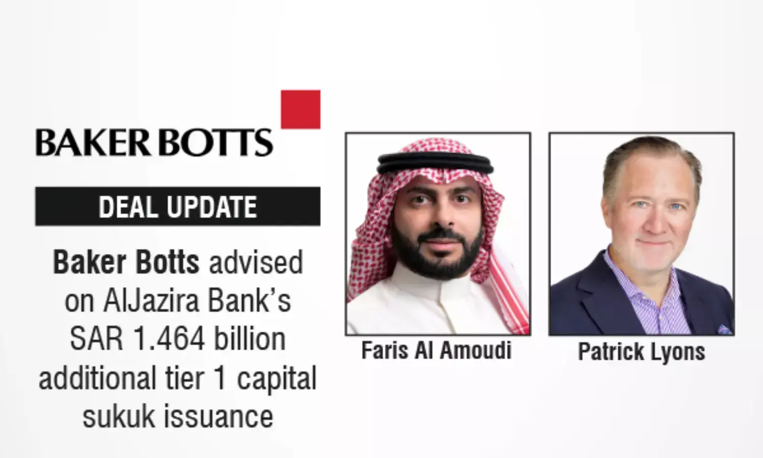 Baker Botts advised on AlJazira Bank’s SAR 1.464 billion additional tier 1 capital sukuk issuance.
