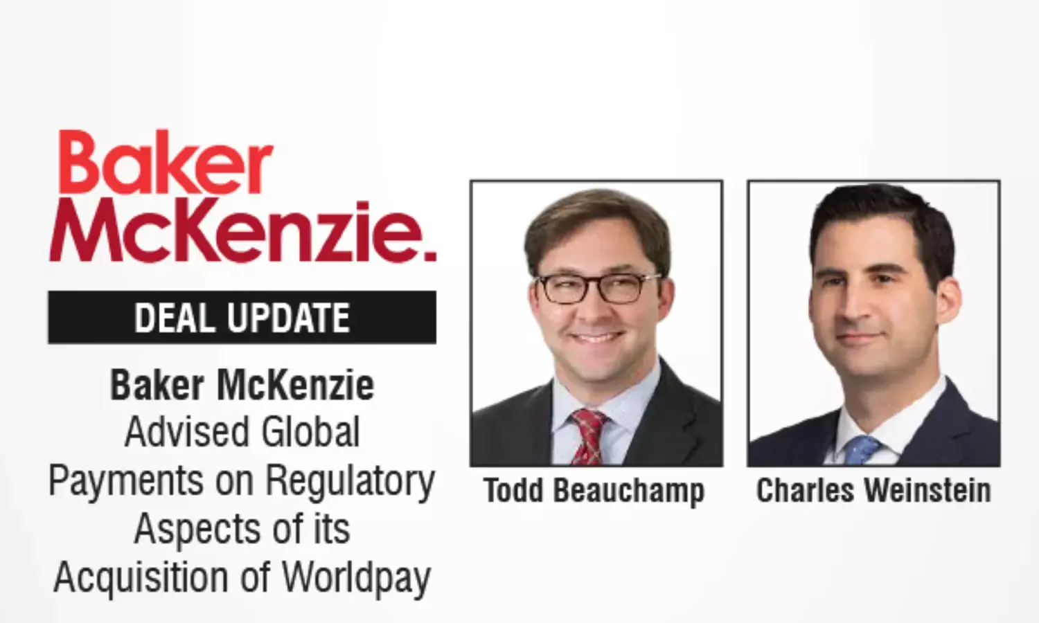 Global law firm Baker McKenzie advised Global Payments Inc. as the regulatory counsel in its acquisition of Worldpay from