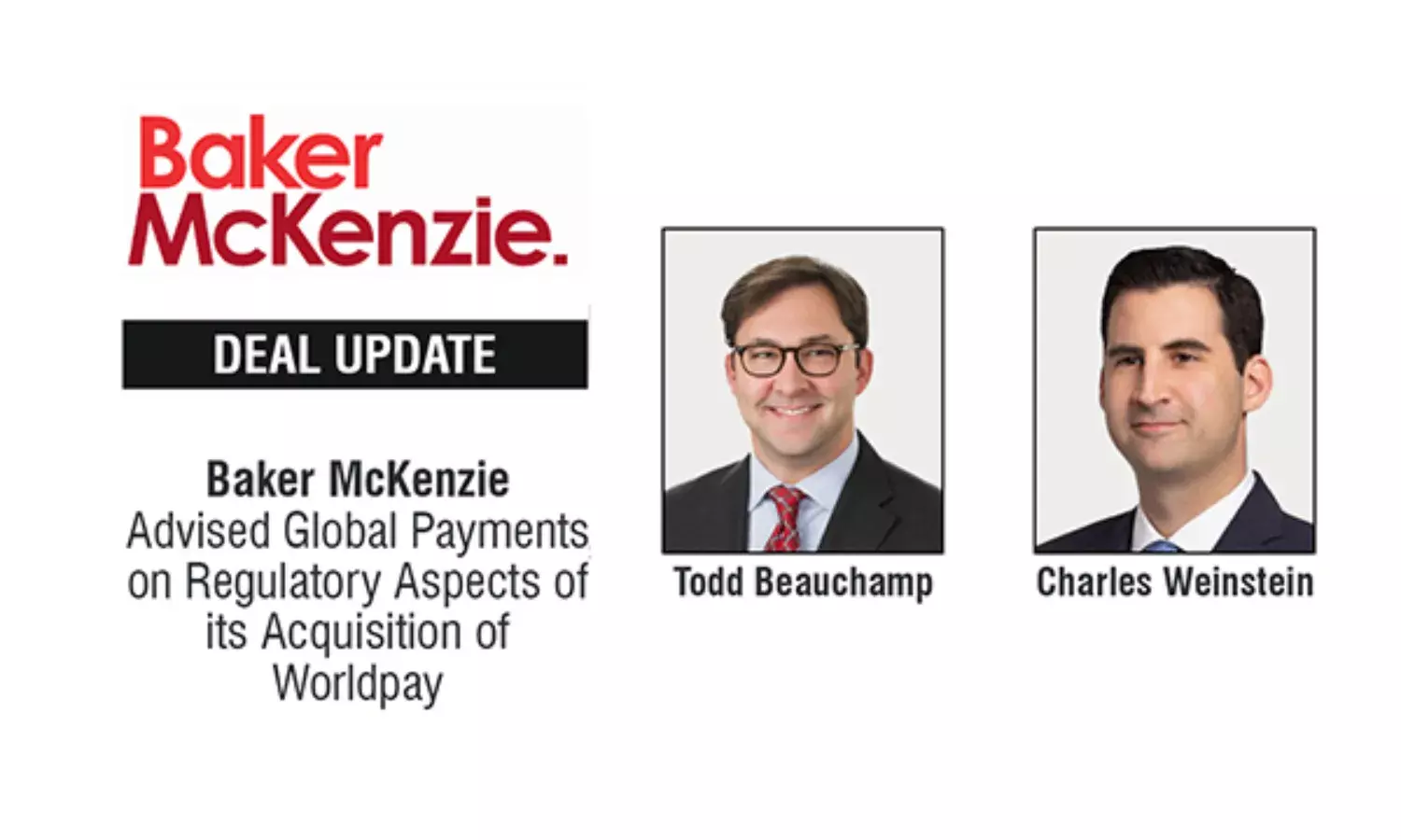 Global law firm Baker McKenzie advised Global Payments Inc. as regulatory counsel in its acquisition of Worldpay from Fidelity