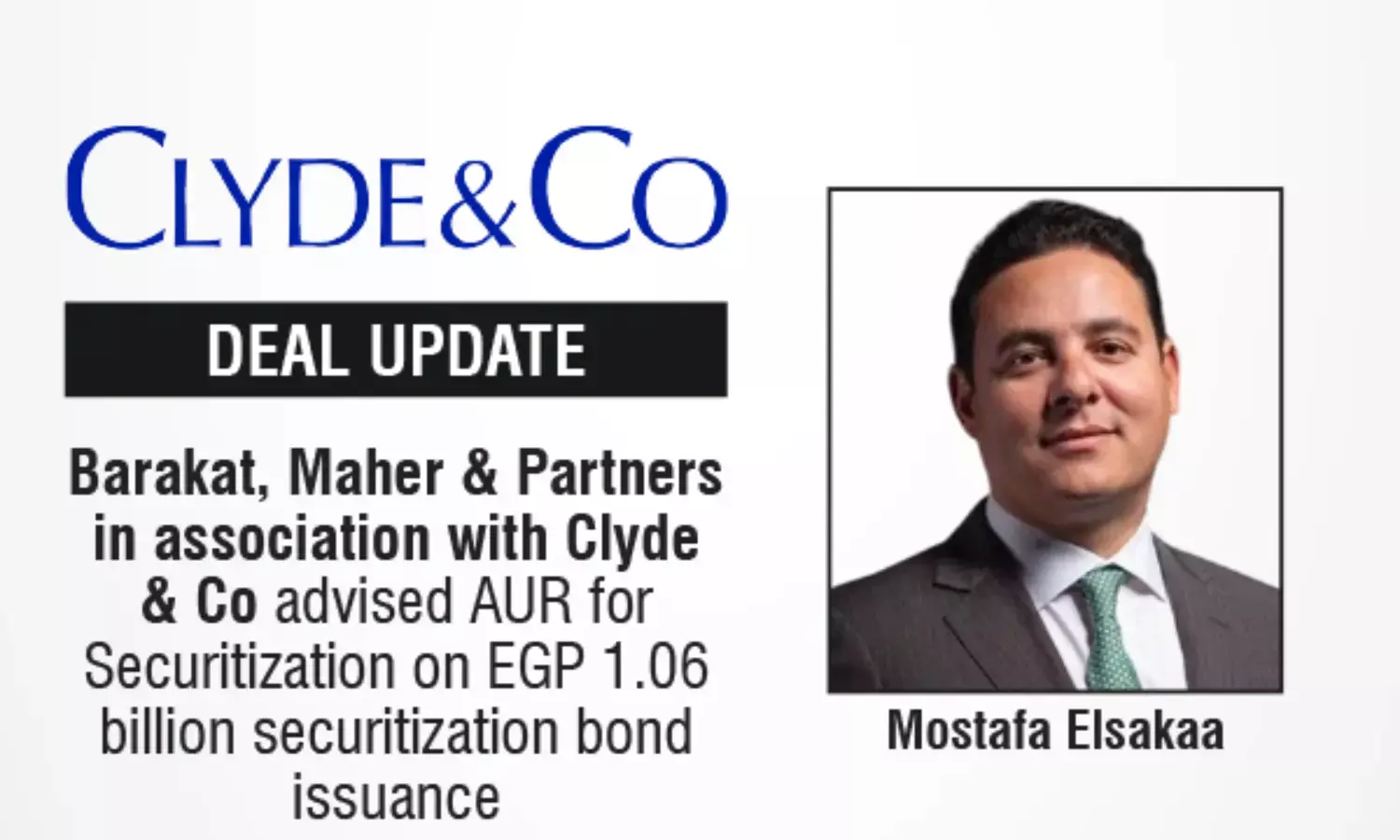 The Barakat, Maher & Partners and Clyde & Co team was led by Mostafa Elsakaa (Partner and Head of Capital Markets, Cairo Office), with support from Walid Enany (Senior Associate), and Omar Mahmoud (Associate) and Mahmoud Toraya (Associate).