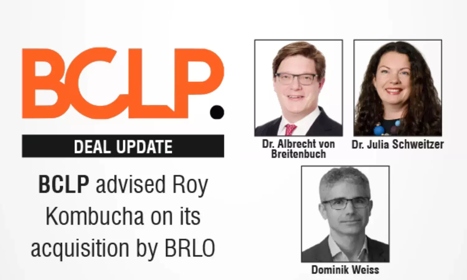 International law firm BCLP advised Berlin‑based beverage producer Roy Kombucha on the sale of its business operations to Berlin brewery BRLO.