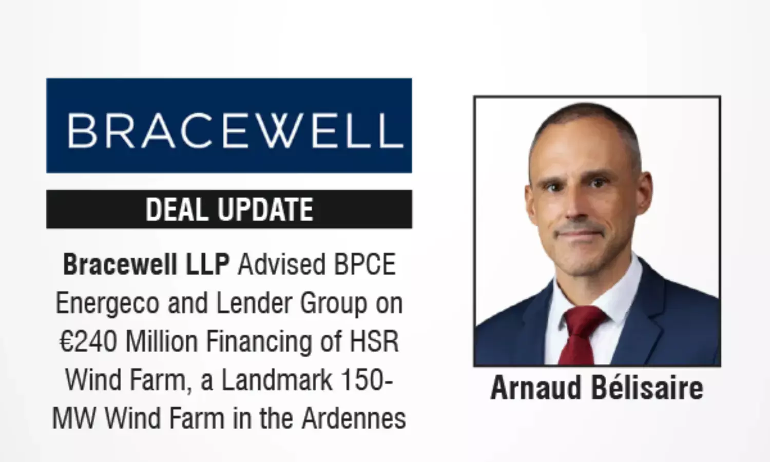 Bracewell LLP Advised BPCE Energeco and Lender Group on €240 Million Financing of HSR Wind Farm, a Landmark 150-MW Wind Farm in the Ardennes