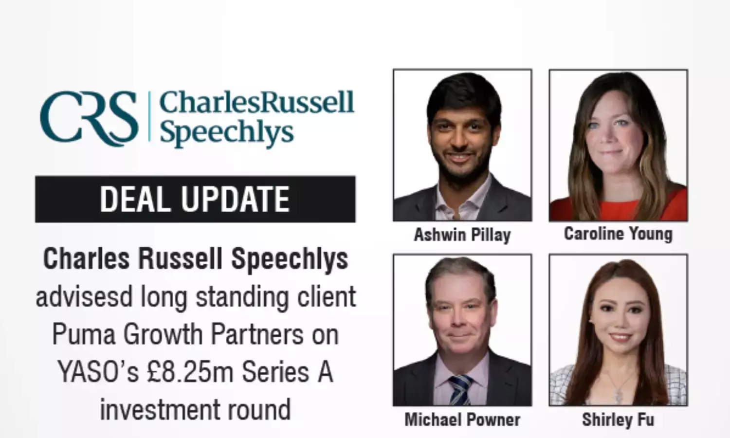Charles Russell Speechlys has advised long standing client Puma Growth Partners on a £8.25 million Series A investment round for YASO, the operating system for global brands in China.