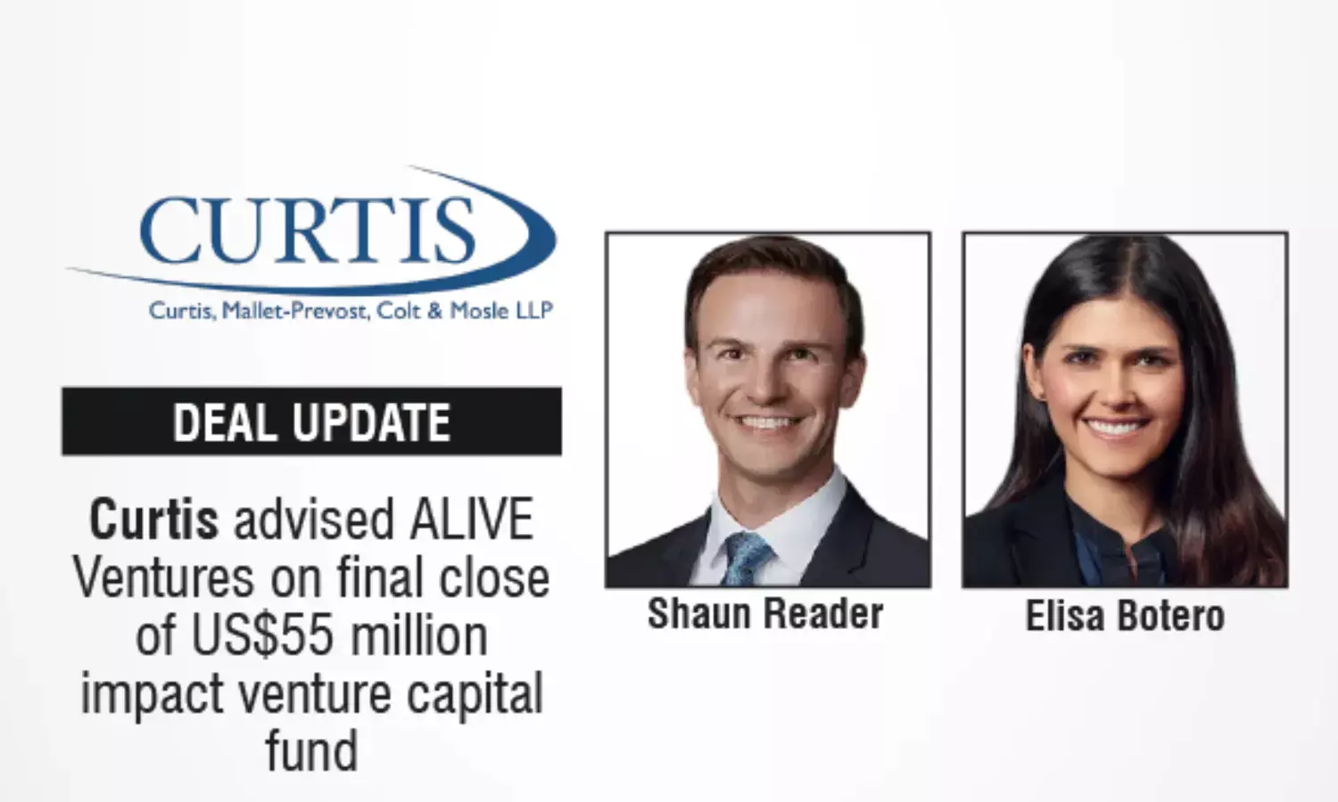 Curtis advised ALIVE Ventures on final close of $55M impact VC fund for Latin America growth.
