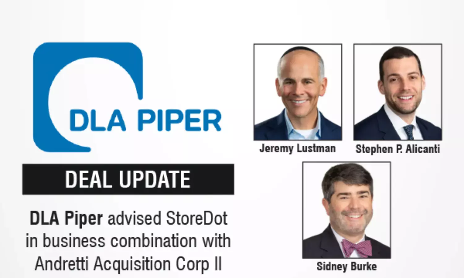 “We are pleased to help StoreDot bring its next-gen battery technology to the US public markets by means of a de-SPAC transaction, which is designed to finance StoreDot’s growth in the rapidly expanding global EV battery market,” said Josh Kaufman, Co-Chair of DLA Piper’s Capital Markets and Public Company Advisory practice.