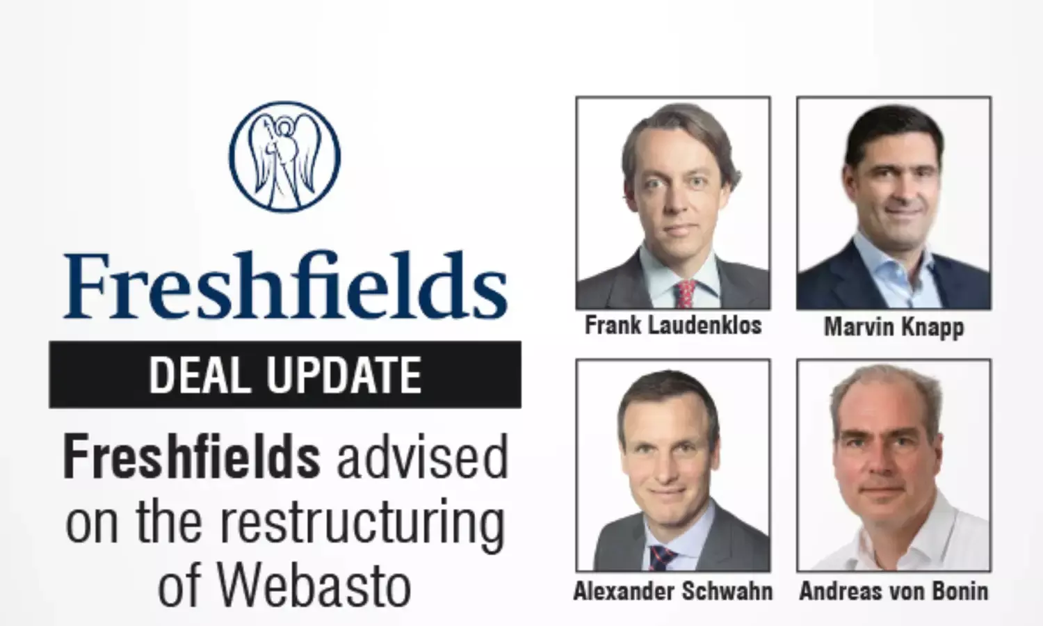 Global Leading Law firm Freshfields advised the core banks of Webasto SE, led by the coordinating banks Bayerische