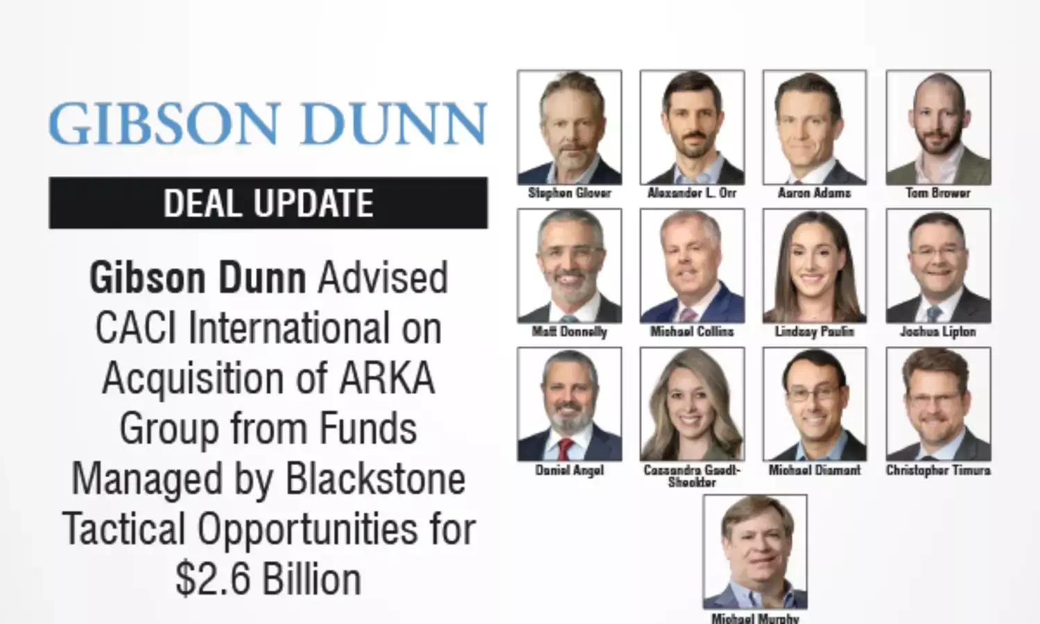 Gibson Dunn is advised CACI International Inc on its acquisition of ARKA Group L.P. from funds managed by Blackstone Tactical Opportunities for $2.6 billion.