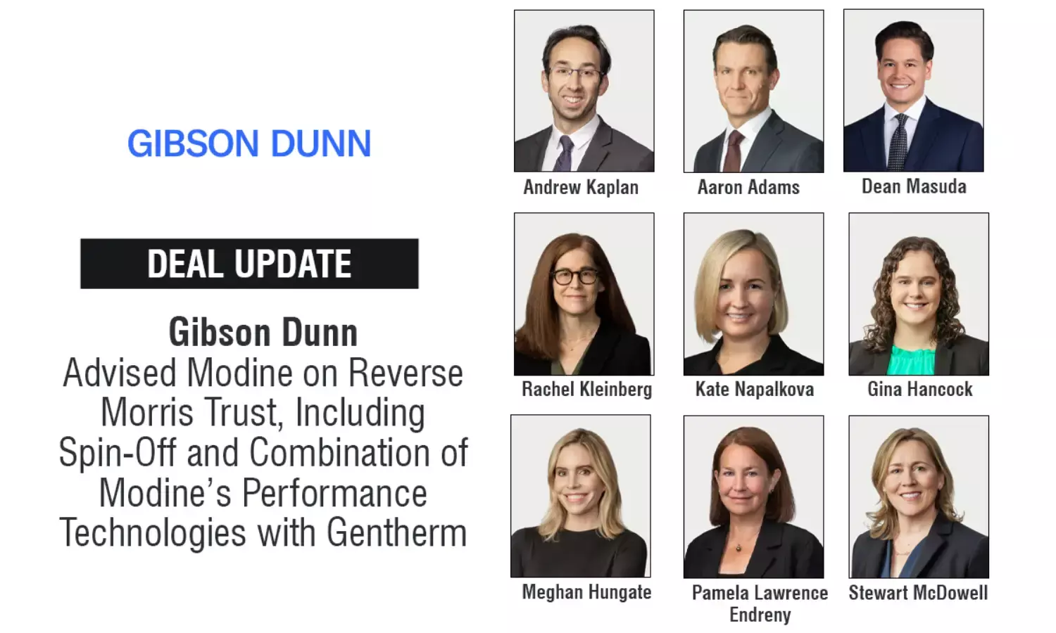 Gibson Dunn Advised Modine On Reverse Morris Trust, Including Spin-Off And Combination Of Modine’s Performance Technologies With Gentherm