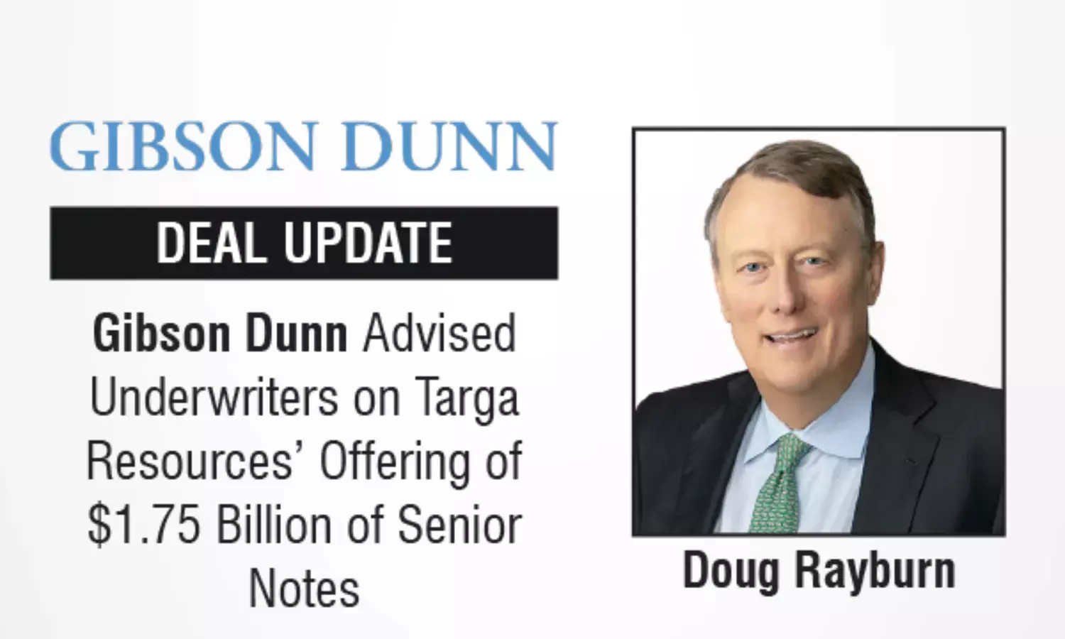 Gibson Dunn is advised the underwriters on Targa Resources Corp.’s offering of $1.75 billion of senior notes.
